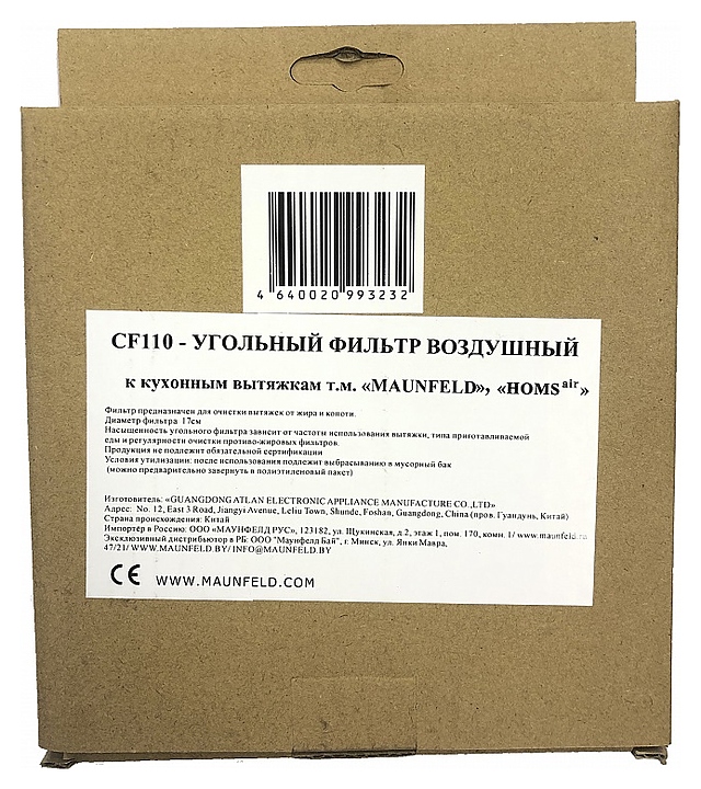 Угольный фильтр Maunfeld CF110 используется с кухонными вытяжками при работе в режиме рециркуляции для эффективной очистки воздуха от примесей и устранения неприятных запахов. Характеристики: