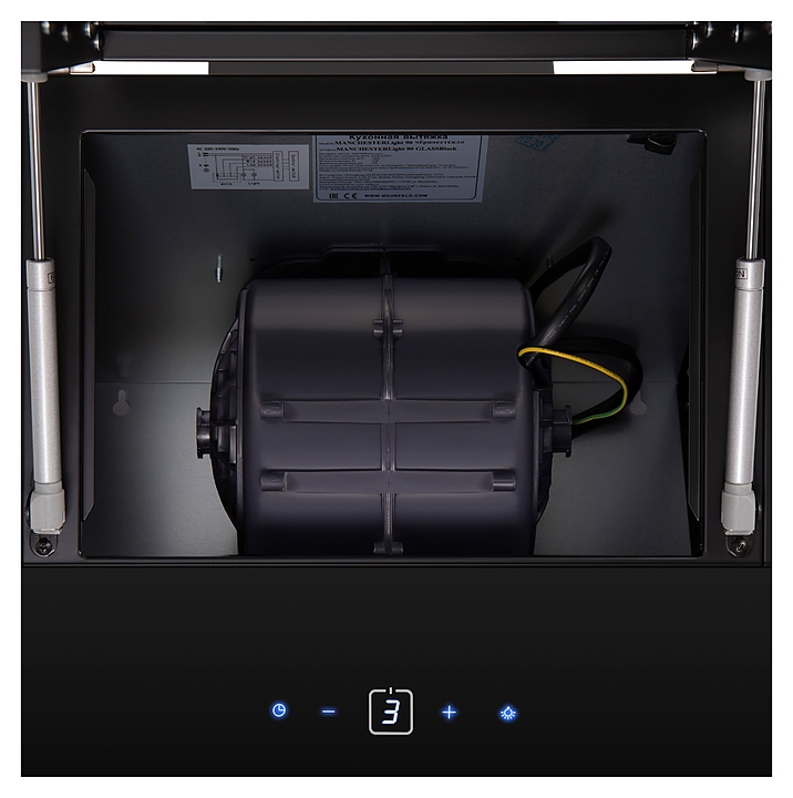 Пристенная кухонная вытяжка Maunfeld Manchester Light 90 предназначена для очистки воздуха от продуктов горения, копоти и запахов в процессе приготовления пищи путем принудительной вентиляции в домашних условиях. Модель оснащена электродвигателем Fime (Италия), состоящей из 3 каскадных пластин наклонной фасадной панелью, 2 круглыми светодиодными светильниками, кнопочной панелью управления с синей подсветкой клавиш и цифровым дисплеем. Корпус выполнен из высококачественной стали с термостойким покрытием черного цвета, пластины фасада – из прочного черного закаленного стекла с глянцевой поверхностью, фильтр – из алюминия. В комплект поставки входят набор монтажных креплений, гофра, адаптер на 120 мм, антивозвратный клапан и инструкция по эксплуатации. Особенности: