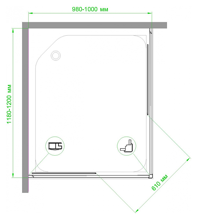 Уголок душевой Royal Bath RB HPD-T 100x120x185 см, прозрачное, белый профиль
