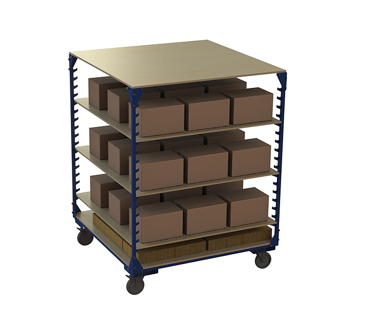 Мобильный стеллаж Нова-склад SY01 предназначен для перемещения грузов, стандартных евробоксов или картонных коробок внутри складских, торговых и производственных помещений. Модель оснащена 5 полками. Основание выполненно в виде плоской стальной рамы, опорные поверхности изготовлены из листовой фанеры. Внимание! Колеса в комплект поставки не входят и приобретаются отдельно. Особенности: