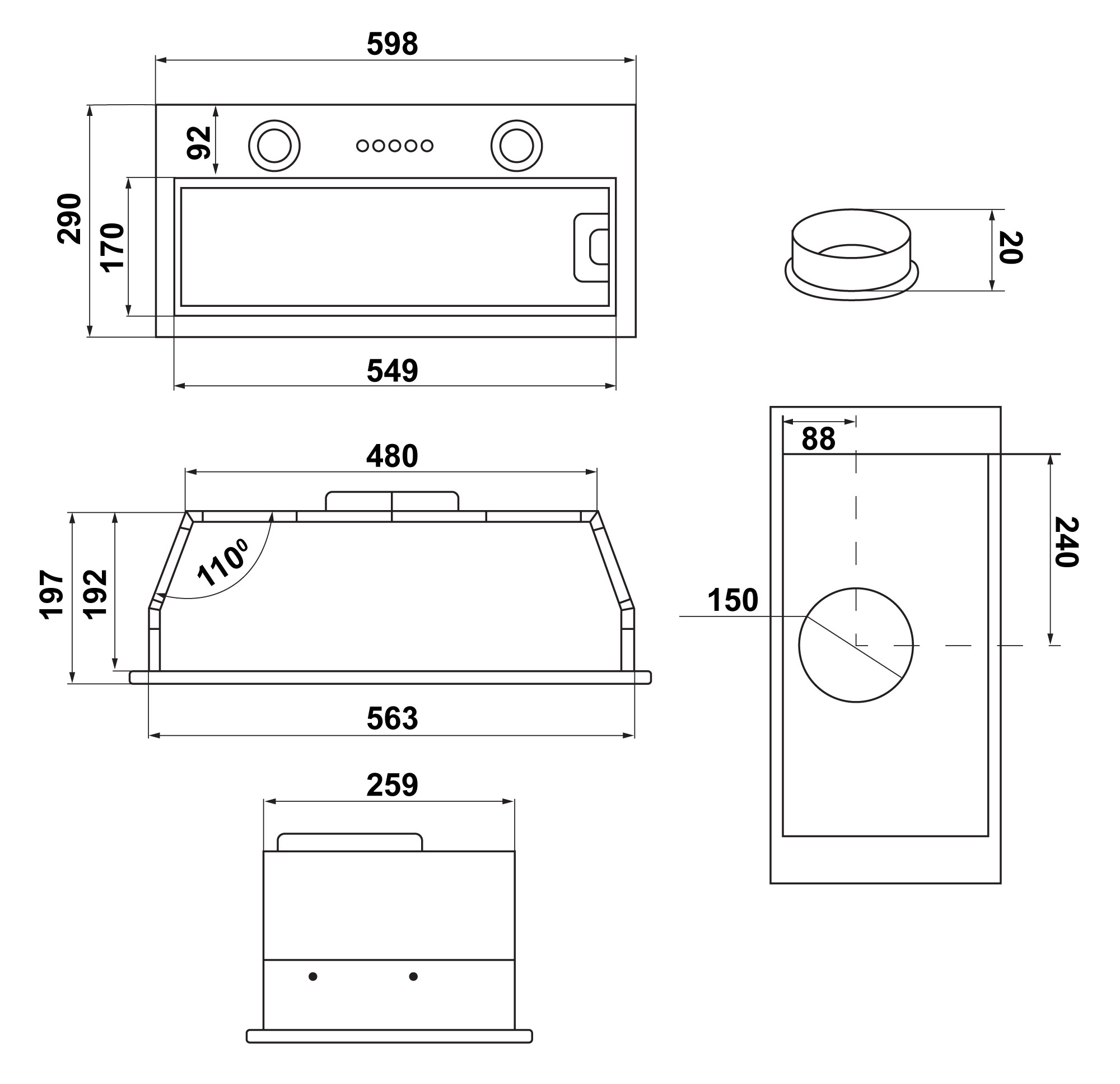 Встраиваемая кухонная вытяжка Maunfeld Thames 601PM предназначена для очистки воздуха от продуктов горения, копоти и запахов в процессе приготовления пищи путем принудительной вентиляции в домашних условиях. Модель оснащена электродвигателем Fime (Италия), 2 круглыми светодиодными светильниками и кнопочной панелью управления. Корпус выполнен из высококачественной нержавеющей стали, фильтр – из алюминия. В комплект поставки входят набор монтажных креплений, адаптер на 120 мм и инструкция по эксплуатации. Особенности: