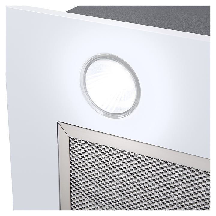 Встраиваемая кухонная вытяжка Maunfeld Crosby Light 50 предназначена для очистки воздуха от продуктов горения, копоти и запахов в процессе приготовления пищи путем принудительной вентиляции в домашних условиях. Модель оснащена электродвигателем Fime (Италия), 2 круглыми ветодиодными светильниками, механической панелью управления с 2 ползунковыми переключателями. Корпус выполнен из высококачественной нержавеющей стали с термостойким покрытием белого цвета, фильтр – из алюминия. В комплект поставки входят набор монтажных креплений, адаптер на 150 мм, антивозвратный клапан и инструкция по эксплуатации. Особенности: