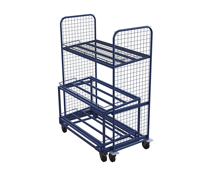 Производственная тележка Нова-склад VK24 предназначена для перемещения грузов, пластиковых ящиков, стандартных евробоксов или картонных коробок внутри складских, торговых и производственных помещений. Модель оснащена выдвижными полками. Тележка изготовлена из высококачественных материалов. Внимание! Колеса в комплект поставки не входят и приобретаются отдельно. Особенности: