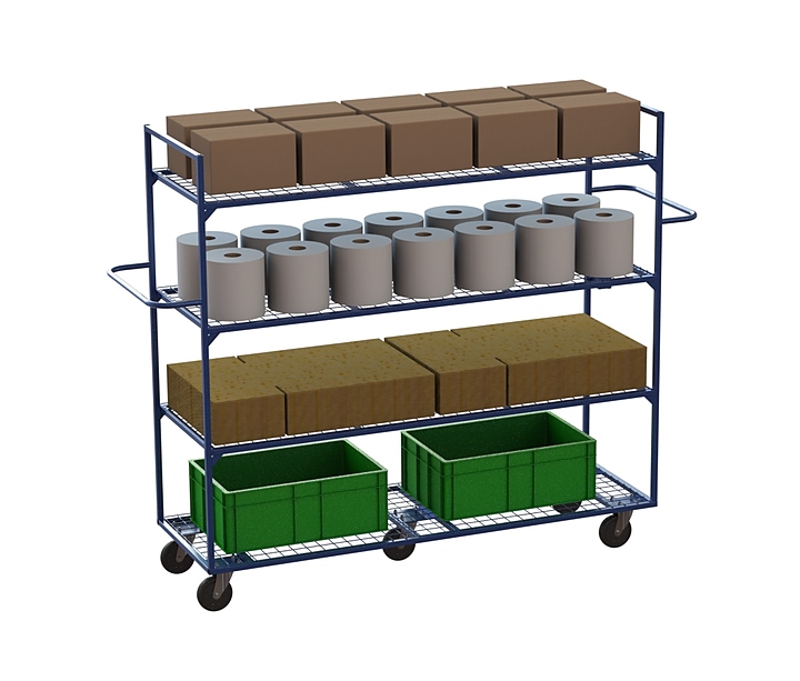 Производственная тележка Нова-склад OZ11 предназначена для хранения и транспортировки товаров на складах и рабочих станциях, предприятиях пищевой промышленности, в торговых и производственных помещениях. В комплект оставки входит полный набор метизов для установки платформенных колес и сборки тележки. Внимание! Колеса в комплект поставки не входят и приобретаются отдельно. Особенности: