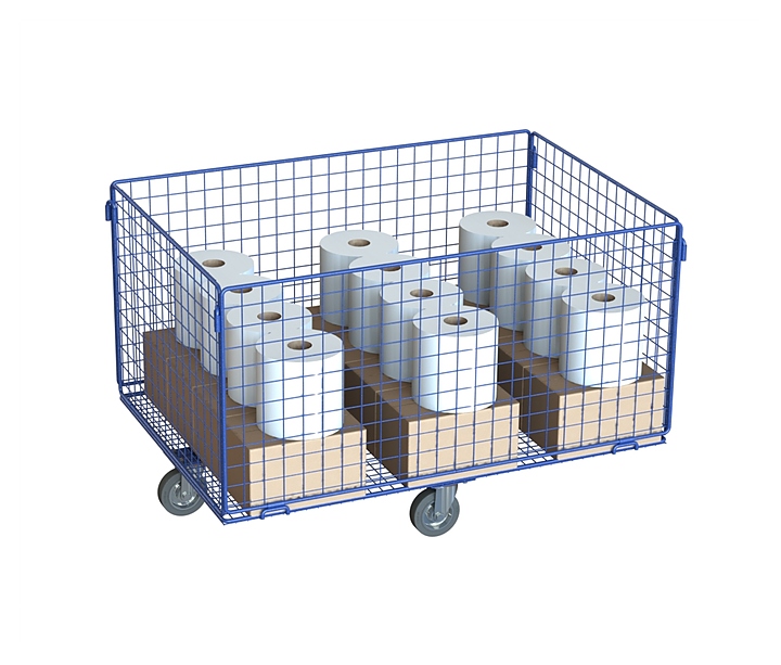 Производственная тележка Нова-склад VK44 предназначена для хранения и транспортировки товаров на складах и рабочих станциях, предприятиях пищевой промышленности, в торговых и производственных помещениях. Корзина выполнена из металлических прутьев. Внимание! Колеса в комплект поставки не входят и приобретаются отдельно. Особенности: