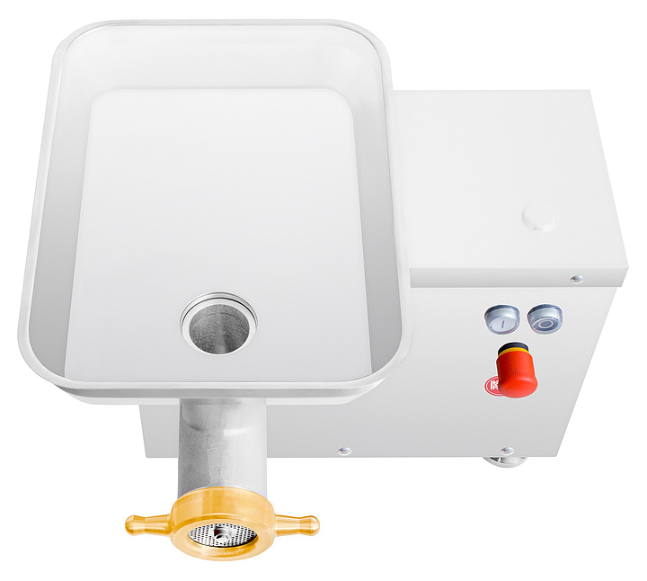Мясорубка Koneteollisuus Oy (KT) LM-10/P предназначена для измельчения мяса и рыбы на фарш, повторного измельчения котлетной массы и набивки колбас на предприятиях пищевой промышленности и торговли. Модель оснащена мощным двигателем, равномерным ходом и низким уровнем шума при работе. Корпус и лоток для мяса выполнены из нержавеющей стали, мясорубочная часть - из пищевого алюминия, нож и решетка - из особо прочной инструментальной стали. Особенности: