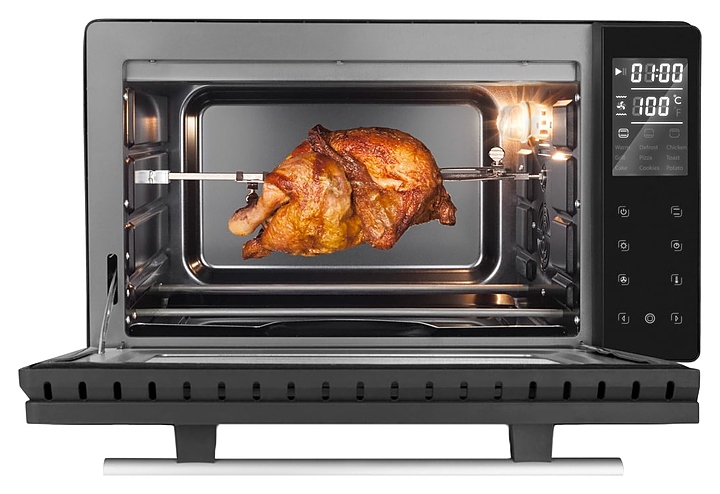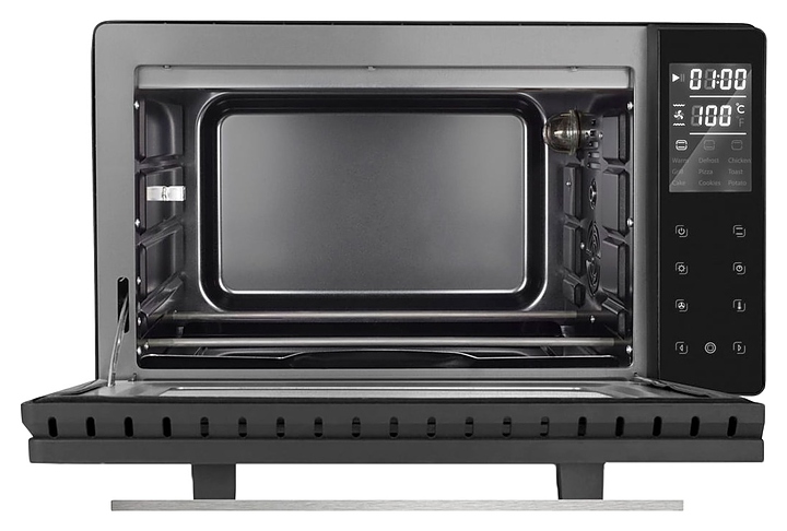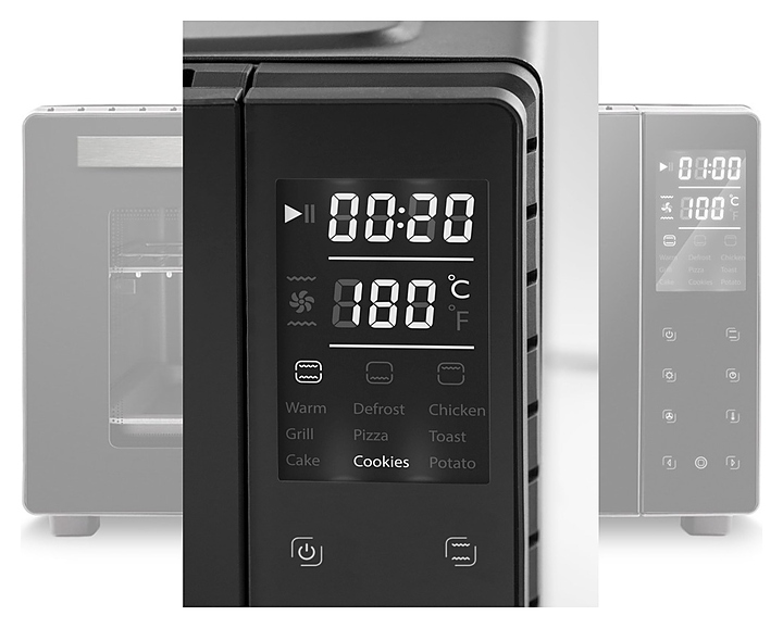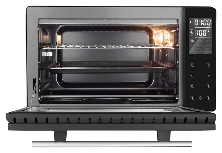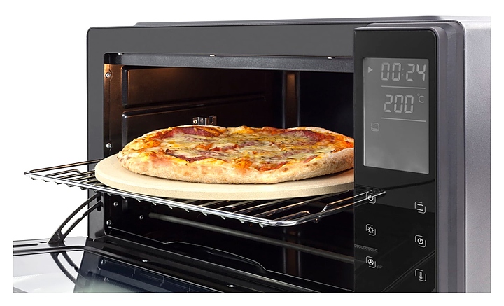 Мини-печь CASO TO 26 electronic предназначена для приготовления и разогрева различных блюд, выпечки кондитерских и хлебобулочных изделий на предприятиях общественного питания и торговли, а также в домашних условиях. Модель оснащена откидной дверцей с горизонтальной рукояткой и обзорным окном, сенсорной панелью управления с 2 цифровыми дисплеями. Корпус с черным покрытием и рукоятка серебристого цвета выполнены из стали, нагревательные элементы – из высококачественной нержавеющей стали, внутренняя облицовка камеры с антипригарным покрытием, остекление фронта черного цвета. В комплект поставки входят решетка для гриля, противень с антипригарным покрытием, поддон для крошек из нержавеющей стали и камень для пиццы. Особенности: