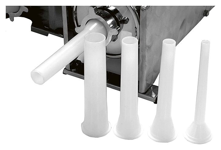 Колбасный шприц Fama FIN 102 используется на предприятиях общественного питания и торговли для изготовления колбас, сосисок, сарделек и шпикачек. Корпус выполнен из нержавеющей стали, цилиндр - из нержавеющей стали AISI 304, поршень и ручка - из алюминия. В комплект поставки входят 3 насадки из ABS-пластика: ø 8, 16 и 24 мм. Особенности: