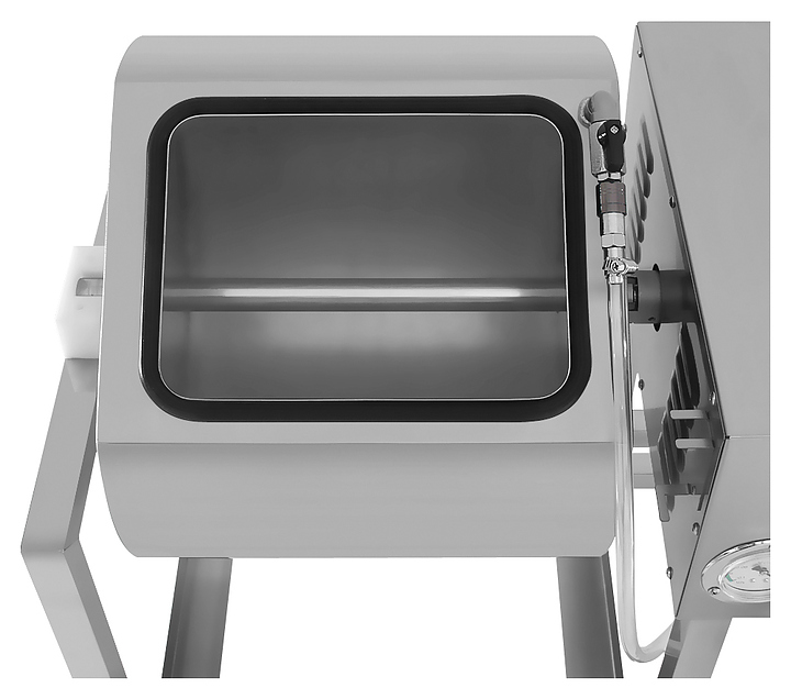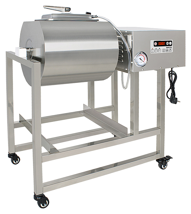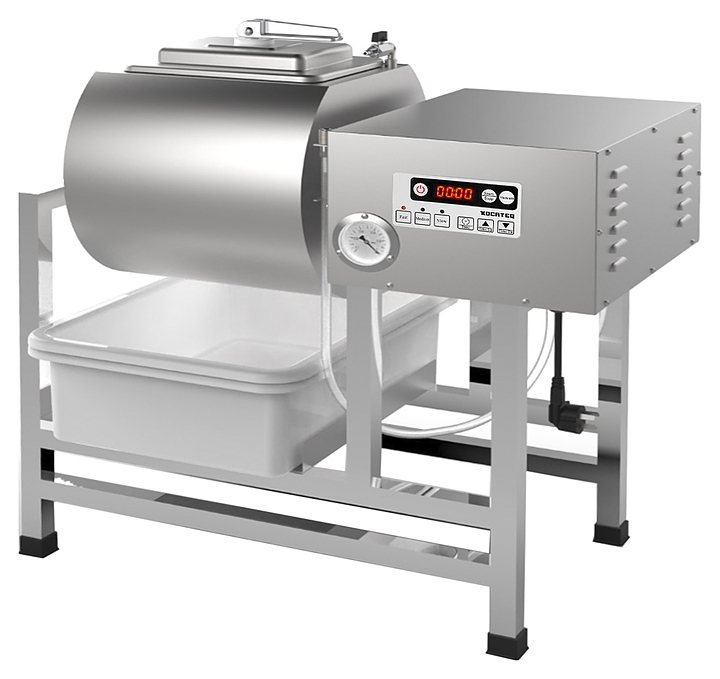 Маринатор Kocateq M 38 E Vac используется на предприятиях общественного питания и торговли для быстрого маринования различных видов мяса, птицы и рыбы в автоматическом режиме. Модель оснащена электронной панелью управления, кнопкой включения, электронным дисплеем для отображения времени работы, кнопкой старт/стоп и кнопками для переключения скоростей. Корпус выполнен из нержавеющей стали AISI304 толщиной 1,2 мм. В комплект поставки входят пластиковое сито 470х370х140 мм и пластиковый лоток 525х380х150 мм для выгрузки мяса. Колеса не входят в комплект поставки и приобретаются отдельно. Особенности: