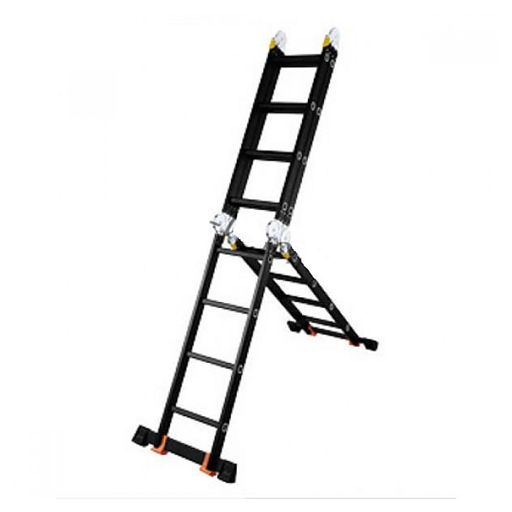 Лестница-трансформер Мастер-инструмент МИ ПРОФИ 4х7 используется для выполнения строительных, ремонтных, отделочных или иных видов работ, когда необходимо произвести какие-либо действия на высоте. Модель оснащена большим замком. Лестница изготовлена из алюминия, замки - из стали, заглушки - из резинопластика. Особенности: