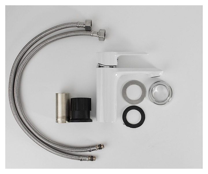 Смеситель для раковины ESKO SORRENTO WHITE SR 26W предназначен для подачи горячей и холодной воды в ванных помещениях. Модель оснащена керамическим картриджем, обеспечивающим плавный ход рычага смесителя, контроль и точность при выборе напора и температуры воды. Крепление FastFix позволяет надежно монтировать смеситель без использования инструментов. Изделие выполнено из латуни, отличающейся прочностью, долговечностью и устойчивостью к перепадам температур. В комплект поставки входят 2 гибкие подводки. Дополнительные характеристики: