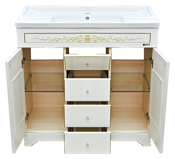 Тумба под раковину Misty Milano-120 120,5х87 см, белая с патиной, декор