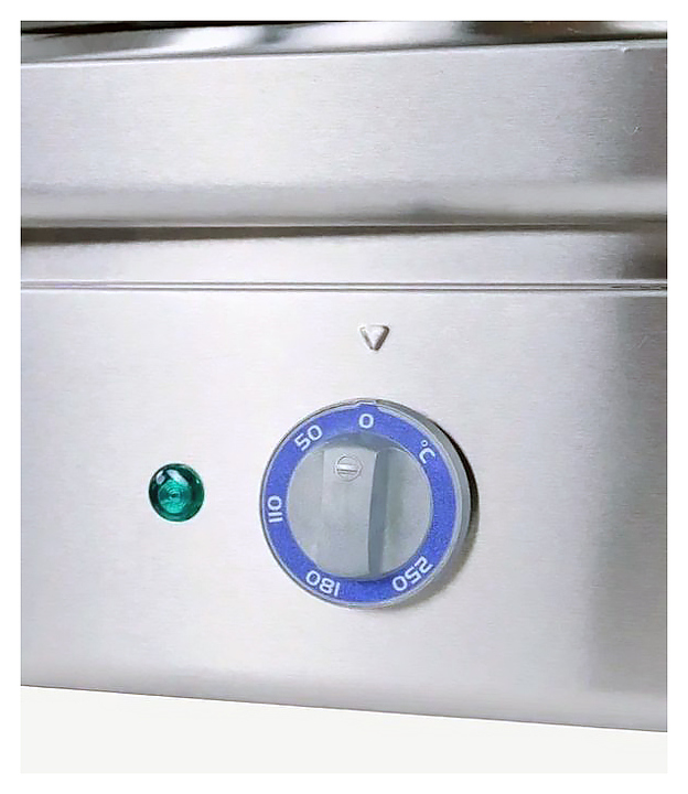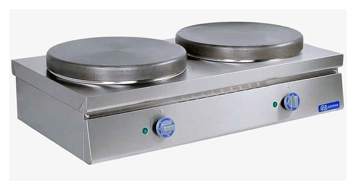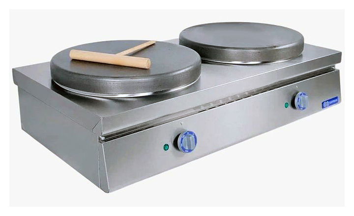 Блинница KAYMAN БЭ-2-360 А используется на предприятиях общественного питания и торговли. Модель оснащена ТЭНами, расположенными снизу, и 2 терморегуляторами. Корпус выполнен из нержавеющей стали, жарочные поверхности - из жаропрочного чугуна, обеспечивающего высокие антипригарные свойства и устойчивость к механическим повреждениям. В комплект поставки входят деревянная лопатка для распределения теста и лопатка для переворачивания блинов. Дополнительные характеристики: