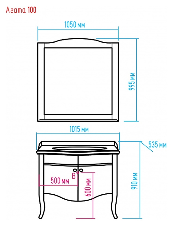 Тумба может использоваться вместе с раковиной Dreja Ретро 100 см.