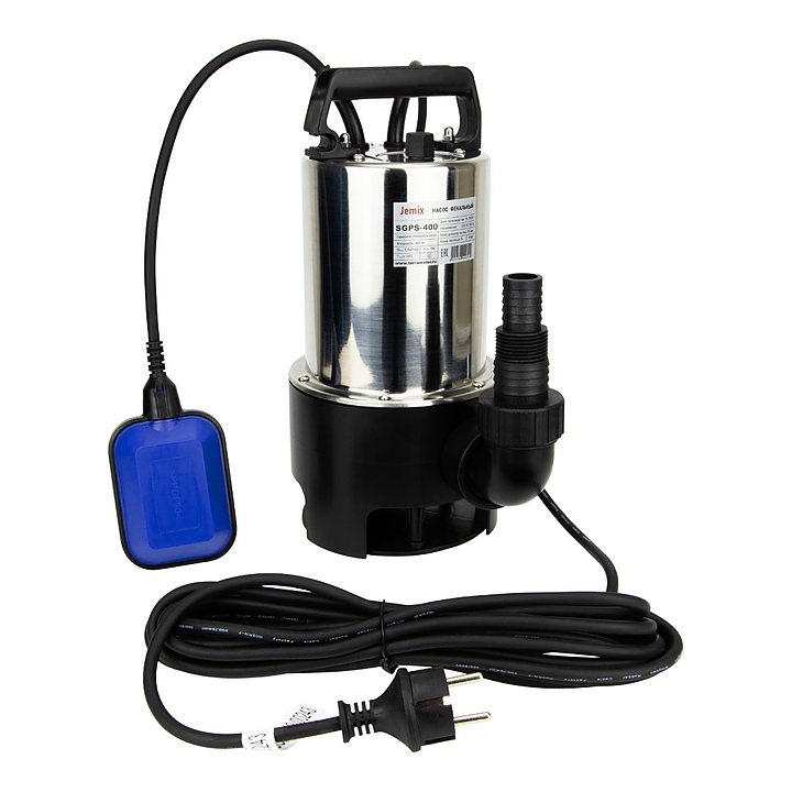 Фекальный насос JEMIX SGPS-750 предназначен для откачки воды с содержанием фракций ила или фекалий, откачки грунтовых вод из подвальных помещений, осушения небольших прудов и бассейнов, забора воды для полива из разных водоемов и перекачивания пресной воды из колодцев. Модель оснащена встроенным поплавковым выключателем. Ручка для переноски и верхняя часть корпуса изготовлены из нержавеющей стали. В комплект поставки входит выходной патрубок. Особенности: