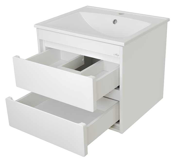 Тумба под раковину Misty Барселона-60 57,5х50 см, подвесная, с 2 ящиками, белая эмаль
