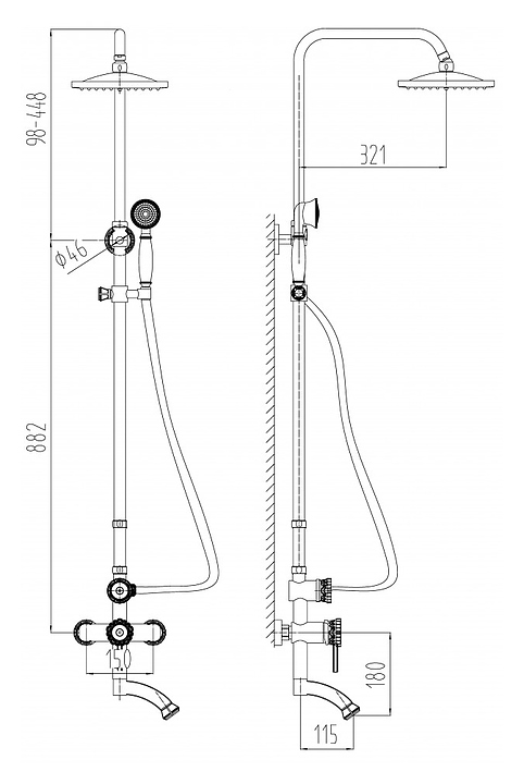 Душевой комплект Milacio Villena MC.103.BBR используется в ванных комнатах. Душевые колонны, в которых ручной душ, верхний душ и смеситель объединены в одном корпусе, дополняют эстетическую линию серии. Модель оснащена керамическим картриджем, обеспечивающим плавный ход рычага смесителя, контроль и точность при выборе напора и температуры воды. Однорычажный тип управления позволяет очень быстро и плавно регулировать подачу воды одной рукой. Изделие выполнено из высококачественной латуни, которая отличается прочностью, долговечностью и устойчивостью к перепадам температур. Комплектация: