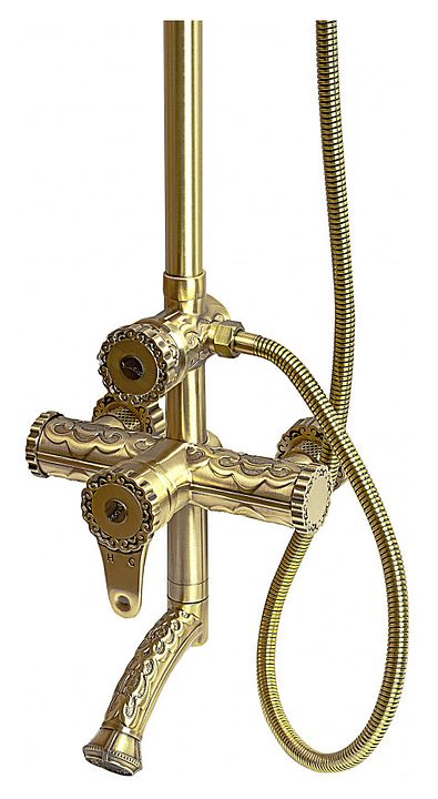 Душевой комплект Milacio Villena MC.103.BR используется в ванных комнатах. Душевые колонны, в которых ручной душ, верхний душ и смеситель объединены в одном корпусе, дополняют эстетическую линию серии. Модель оснащена керамическим картриджем, обеспечивающим плавный ход рычага смесителя, контроль и точность при выборе напора и температуры воды. Однорычажный тип управления позволяет очень быстро и плавно регулировать подачу воды одной рукой. Изделие выполнено из высококачественной латуни, которая отличается прочностью, долговечностью и устойчивостью к перепадам температур. Комплектация:
