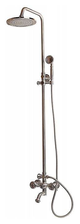 Душевой комплект Milacio Almeria MC.100.SL используется в ванных комнатах. Душевые колонны, в которых ручной душ, верхний душ и смеситель объединены в одном корпусе, дополняют эстетическую линию серии. Модель оснащена керамическим картриджем, обеспечивающим плавный ход рычага смесителя, контроль и точность при выборе напора и температуры воды. Однорычажный тип управления позволяет очень быстро и плавно регулировать подачу воды одной рукой. Изделие выполнено из высококачественной латуни, которая отличается прочностью, долговечностью и устойчивостью к перепадам температур. Комплектация: