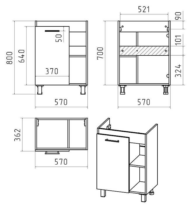 Тумба под раковину Misty Крафт-60 выполнена в современном стиле и идеально впишется в интерьер любой ванной комнаты. Напольная конструкция обеспечивает легкий монтаж и не требует специального ремонта в помещении. Модель оснащена закрытым отделением с распашной дверцей, а также 2 открытыми полками. Корпус изделия выполнен из ЛДСП, фасад - из ЛДСП и МДФ с покрытием глянцевой пленкой. Комплектация: