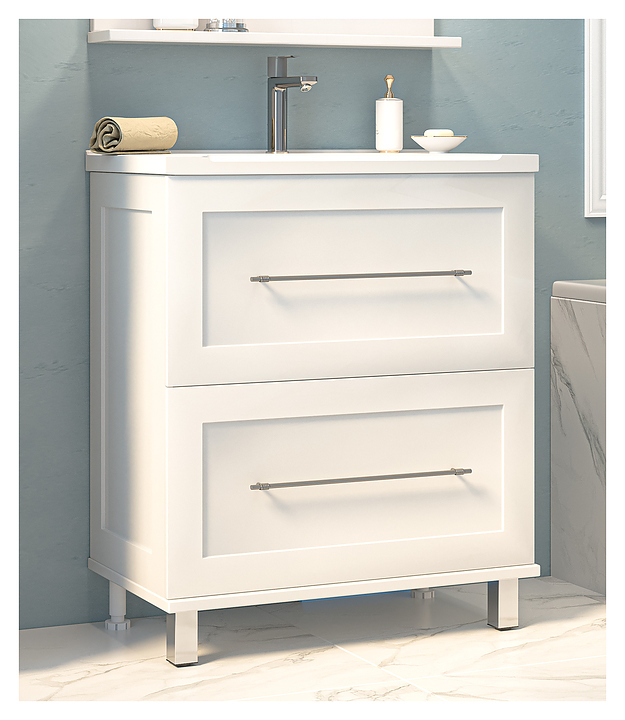 Тумба под раковину Misty Марта-60 выполнена в современном стиле и идеально впишется в интерьер любой ванной комнаты. Напольная конструкция обеспечивает легкий монтаж и не требует специального ремонта в помещении. Модель оснащена 2 выдвижными ящиками с направляющими с доводчиками скрытого монтажа. Тумба может использоваться вместе с раковиной EVVA-60. Комплектация: