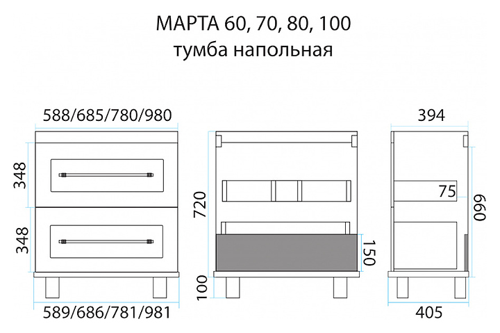 Тумба под раковину Misty Марта-60 выполнена в современном стиле и идеально впишется в интерьер любой ванной комнаты. Напольная конструкция обеспечивает легкий монтаж и не требует специального ремонта в помещении. Модель оснащена 2 выдвижными ящиками с направляющими с доводчиками скрытого монтажа. Тумба может использоваться вместе с раковиной EVVA-60. Комплектация: