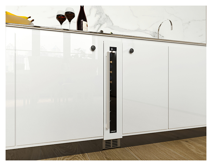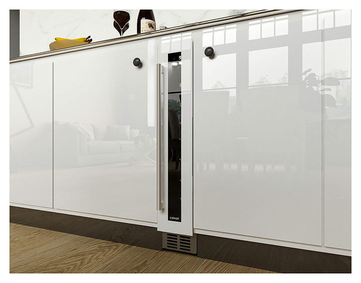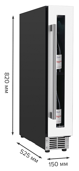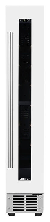 Встраиваемый винный шкаф Libhof Connoisseur CX-9 White предназначен для хранения при оптимальных условиях бутилированного вина различных сортов в барах, ресторанах, специализированных магазинах, подсобных складских помещениях, а также в домашних условиях. Модель оснащена холодильной камерой, базовой донной полкой и 6 парами направляющих для размещения бутылок, распашной дверью с внутренними петлями, длинной вертикальной рукояткой, прозрачным дымчатым обзорным стеклом и сенсорной панелью управления с цифровым дисплеем. Корпус выполнен из металла с антикоррозийным покрытием фронта белого цвета, рукоятка – из металла серебристого цвета, направляющие – из массива буковой древесины. В комплект поставки входят крепеж для рукоятки и инструкция по эксплуатации. Особенности: