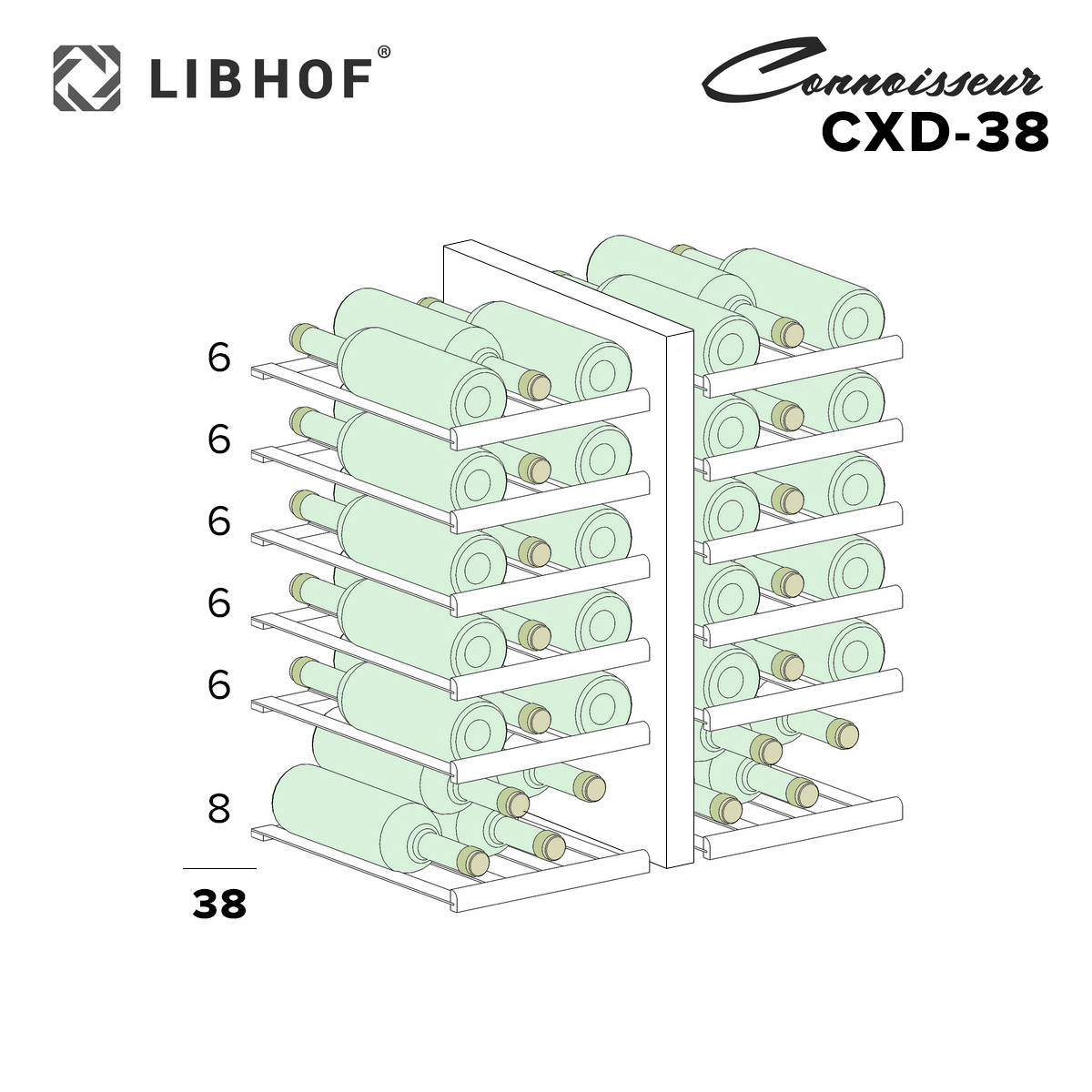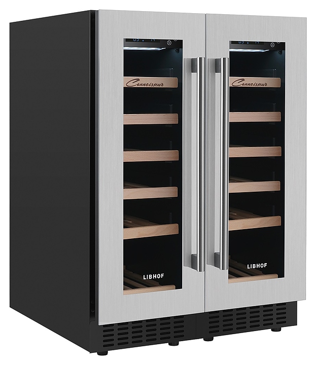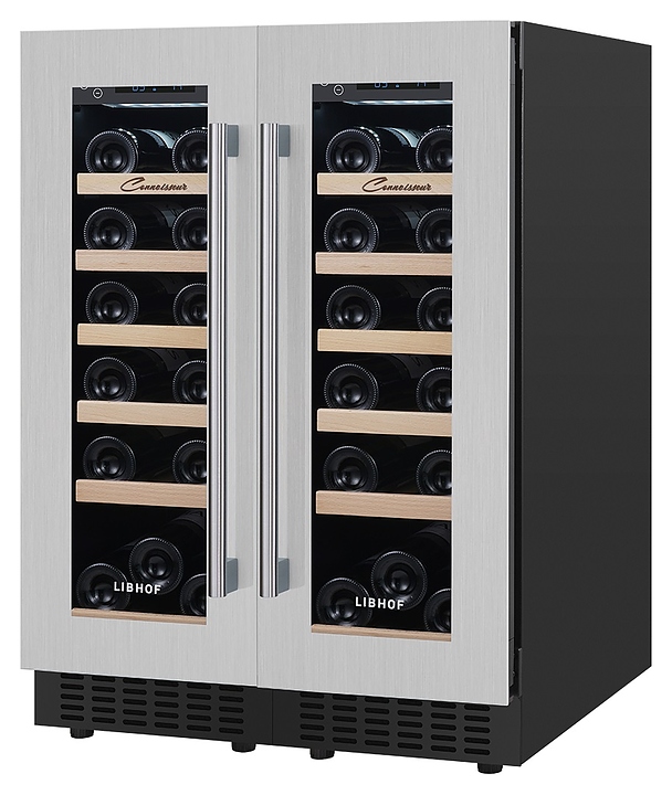 Встраиваемый винный шкаф Libhof Connoisseur CXD-38 Silver предназначен для хранения при оптимальных условиях бутилированного вина различных сортов в барах, ресторанах, специализированных магазинах, подсобных складских помещениях, а также в домашних условиях. Модель оснащена 2 холодильными камерами, 12 полками с направляющими для размещения бутылок, 2 распашными дверьми с внутренними петлями, длинными вертикальными рукоятками, прозрачными дымчатыми обзорными стеклами и 2 сенсорными панелями управления с цифровыми дисплеями с индикацией синего цвета. Корпус выполнен из металла с антикоррозийным покрытием фронта серебристого цвета, рукоятки – из металла серебристого цвета, полки – из массива буковой древесины. В комплект поставки входят крепеж для рукояток и инструкция по эксплуатации. Особенности: