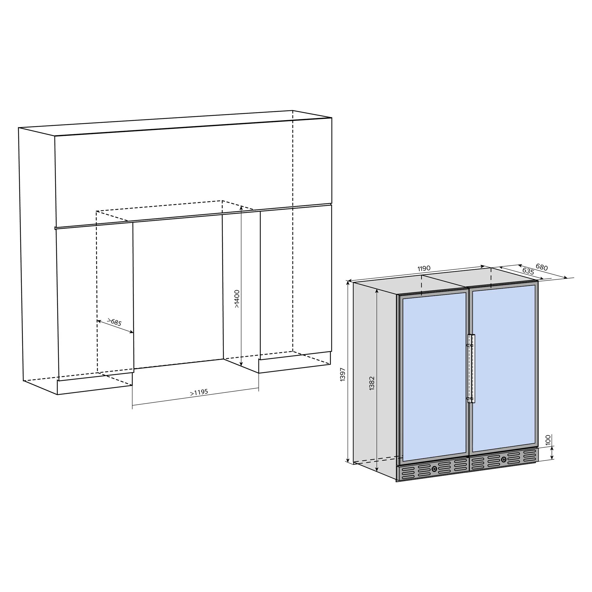 Встраиваемый винный шкаф Libhof Sommelier SOD-254 Silver предназначен для хранения при оптимальных условиях бутилированного вина различных сортов в барах, ресторанах, специализированных магазинах, подсобных складских помещениях, а также домашних условиях. Модель оснащена холодильной камерой с 2 независимыми температурными зонами, 2 цокольными вентиляционными решетками, 2 запираемыми на ключ распашными дверьми на внешних петлях, длинными вертикальными рукоятками, прозрачным дымчатым обзорным остеклением, 2 внутренними сенсорными панелями управления и 2 цифровыми дисплеями с яркой голубой подсветкой. Корпус выполнен из металла с антикоррозийным покрытием черного цвета, полки – из массива буковой древесины, фронт дверей, рукоятки, решетки и окантовка фасада полок – из металла с серебристой поверхностью. В комплект поставки входят 24 полки с направляющими для размещения бутылок, ванночка для воды, ключ для дверных замков, крепеж для рукояток и инструкция по эксплуатации. Особенности: