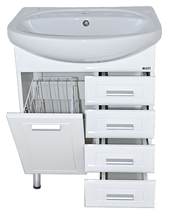 Тумба под раковину Misty Стелла-65 61х70 см, с 4 ящиками и бельевой корзиной, белая