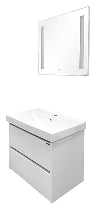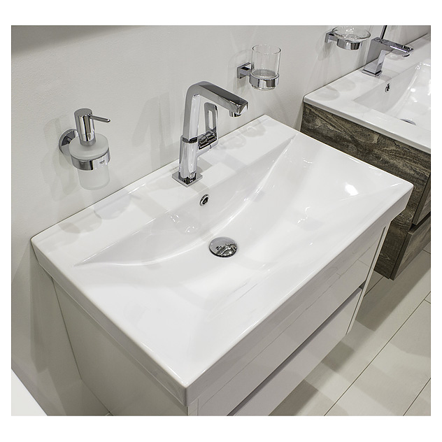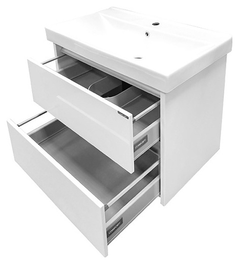 Тумба с раковиной Comforty Дублин-75 дополнит интерьер ванной комнаты. Благодаря подвесной конструкции модель не занимает много места, что экономит пространство и облегчает уборку. Тумба оснащена 2 выдвижными ящиками плавного закрывания. Раковина имеет широкую заднюю поверхность для размещения аксессуаров, слив-перелив и одно отверстие для смесителя, расположенное по центру. Корпус выполнен из влагостойкой ЛДСП, фасад - из МДФ, раковина - из санфарфора, который обладает повышенной прочностью и устойчивостью к негативным внешним факторам, а также долгое время сохраняет идеальную белизну и не впитывает запахи и грязь. В комплект входит раковина Comforty 8057. Дополнительные характеристики: