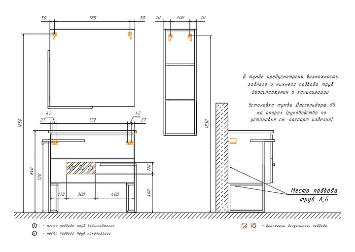 Тумба с раковиной Comforty Дюссельдорф-90 дополнит интерьер ванной комнаты. Модель оснащена 2 выдвижными ящиками плавного закрывания и ножками, защищающими конструкцию в случае намокания пола. Раковина имеет широкую боковую поверхность для размещения аксессуаров, слив-перелив и отверстие для смесителя. Изделие выполнено из влагостойкой ЛДСП, каркас - из стали, раковина - из санфарфора, который обладает повышенной прочностью и устойчивостью к негативным внешним факторам, а также долгое время сохраняет идеальную белизну и не впитывает запахи и грязь. В комплект входит раковина Comforty 9090EL. Дополнительные характеристики: