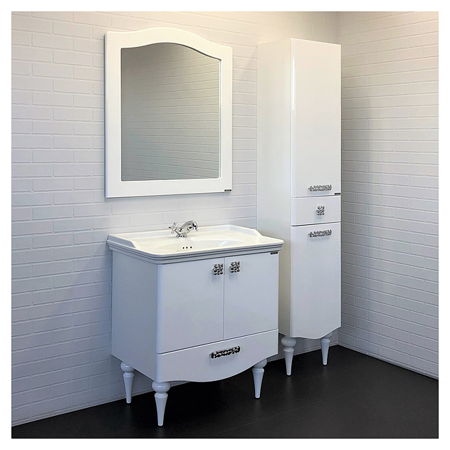 Тумба с раковиной Comforty Монако-80-2 дополнит интерьер ванной комнаты. Модель оснащена 2 распашными дверцами плавного закрывания, выдвижным ящиком и ножками, защищающими конструкцию в случае намокания пола. Раковина имеет широкие бортики по периметру, слив-перелив и отверстие для смесителя, расположенное по центру. Корпус выполнен из влагостойкой ЛДСП, фасад - из МДФ с глянцевой эмалью, раковина - из санфарфора, который обладает повышенной прочностью и устойчивостью к негативным внешним факторам, а также долгое время сохраняет идеальную белизну и не впитывает запахи и грязь. В комплект входит раковина Comforty 50180. Дополнительные характеристики: