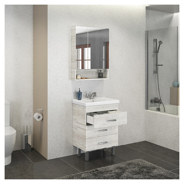 Тумба с раковиной Comforty Никосия-60Н дуб белый