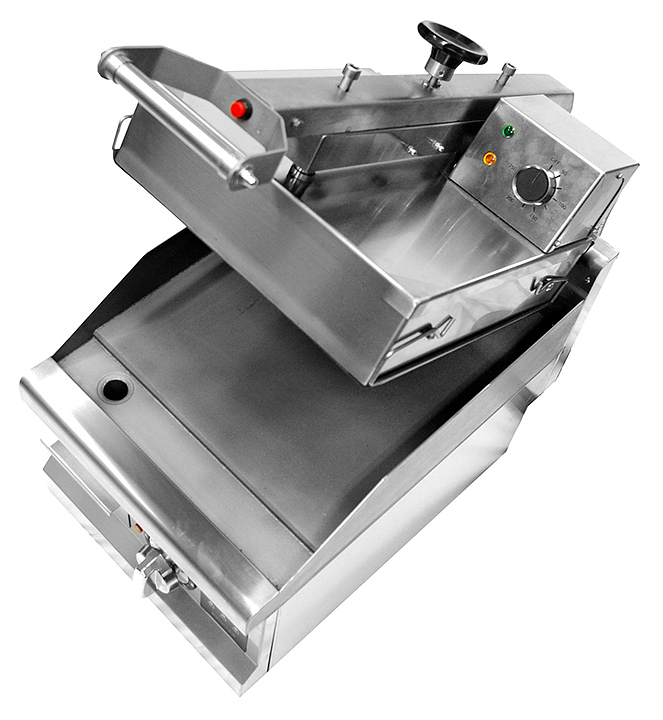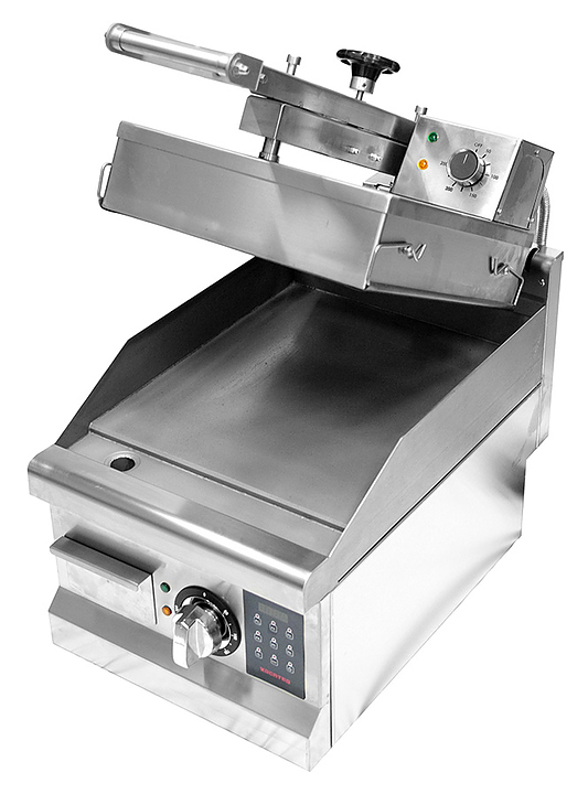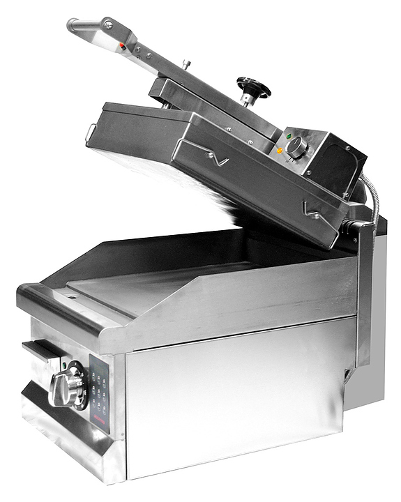 Контактный гриль Kocateq GH33ED предназначен для жарки мяса, птицы, рыбы и овощей, приготовления стейков, гамбургеров и горячих сэндвичей на предприятиях общественного питания и торговли. Модель оснащена цифровой панелью управления, аналоговыми термостатами для регулировки температуры, съемным лотком для сбора жира. Корпус выполнен из нержавеющей стали, ножки - из пластика, нижняя пластина - из теплопроводящего сплава, верхняя пластина покрыта сменной тефлонированной стеклотканью. Особенности: