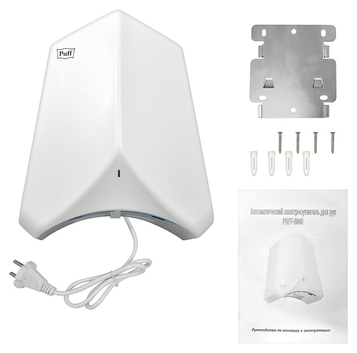 Сушилка для рук Puff 8840 используется в туалетных комнатах торговых центров, гостиниц, аэропортов, предприятий общеcтвенного питания и других местах массового пребывания для бесконтактной гигиеничной сушки. Модель оснащена 2 нагревательными элементами, электродвигателем с вентилятором и кабелем питания с вилкой. Корпус выполнен из ударопрочного АБС-пластика белого цвета. В комплект поставки входят металлическая монтажная планка, набор креплений и инструкция по эксплуатации. Особенности: