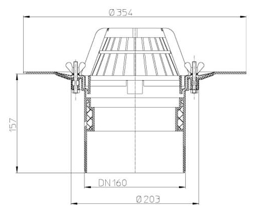 Воронка кровельная HL 62.1/5 с вертикальным выпуском PP Дн 160 с листвоуловителем, электрообогревом, теплоизоляцией, обжимным фланцем