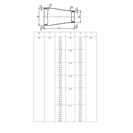 Переход Россия конц Дн 426х10-377х10 используется для герметичного соединения труб различного диаметра без изменения направления. Изделие выполнено из бесшовной стали. Особенности: