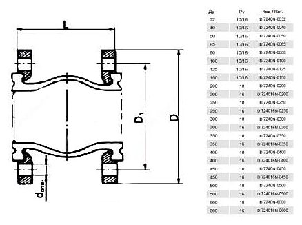 Компенсатор резиновый антивибрационный Tecofi EPDM DI7240N-0250