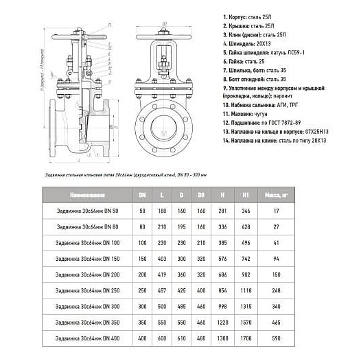 Задвижка клиновая сталь МЗТА 30с64нж Ду 50 Ру25 фл