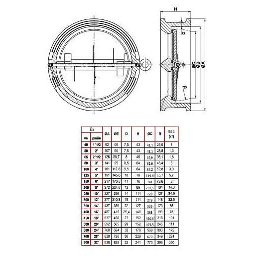 Клапан обратный Tecofi 2/створ CB3448N Ду 150 Ру16 Тмакс=110 оС межфл створки чугун