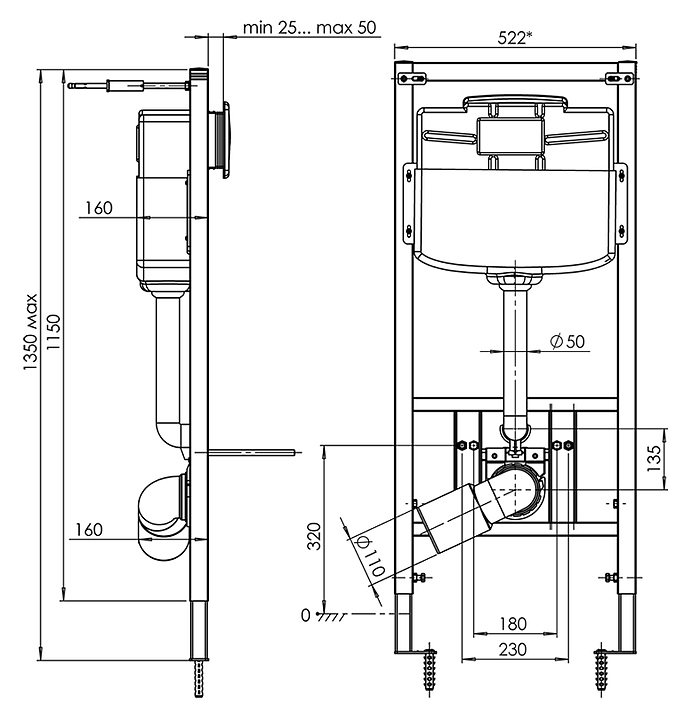 Система инсталляции АНИ Пласт WC1110 предназначена для установки подвесных унитазов. Модель представляет собой настенную опорную раму с бачком скрытого монтажа и регулируемыми по высоте ножками. Рама выполнена из металла, окрашенного защитной краской, что гарантирует долговечность, надежность и защиту от коррозии. В комплект поставки входят сливной бачок. Панель смыва и крепления для установки в комплект поставки не входят и приобретаются отдельно. Комплектация: