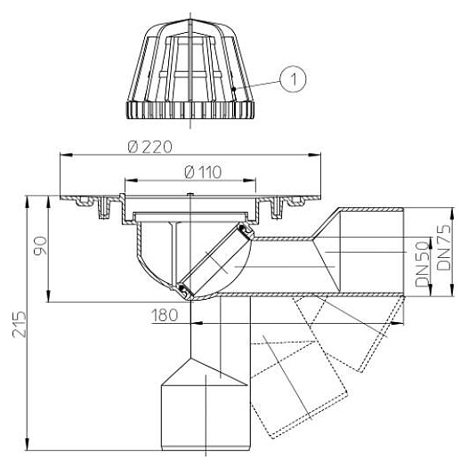 Воронка HL 80.3 с поворотным шарниром PE Дн 50/75 с листвоуловителем, без гидроизоляционного фланца 80.3