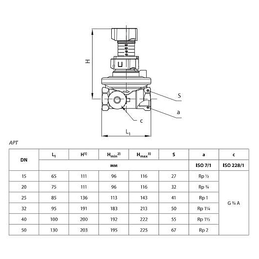 Клапан балансировочный DANFOSS автомат APT Ду 15 Ру16 ВР Kvs=1.6м3/ч б/ниппелей 003Z5701