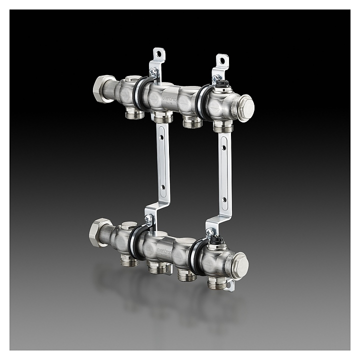 Группа коллекторная Oventrop 1407155 предназначена для центрального распределения теплоносителя радиаторного отопления и охлаждения с принудительной циркуляцией. Модель оснащена подающим и обратным коллектором. Коллектор выполнен из нержавеющей стали AISI 304. Комплект: