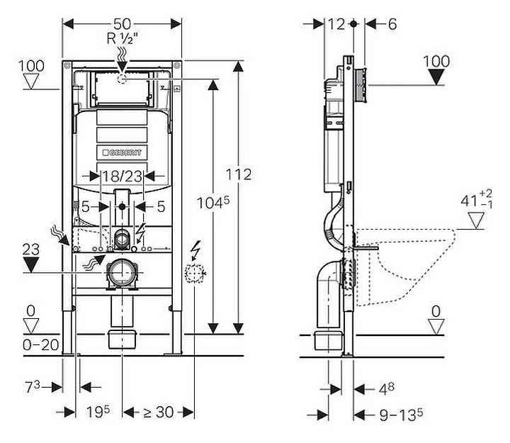 Система инсталляции Geberit Duofix 111.301.KJ.5 предназначена для установки подвесных унитазов. Модель представляет собой настенную опорную раму с бачком, панелью смыва и регулируемыми по высоте ножками. Рама выполнена из стальной трубы окрашенной защитной краской, что гарантирует долговечность, надежность и защиту от коррозии. В комплект поставки входят крепления для установки, сливной бачок и панель смыва. Комплектация: