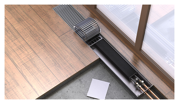Внутрипольный конвектор КЗТО Бриз 200x80x3000 U (5 Ал 12) предназначен для обогрева и поддержания комфортного микроклимата в жилых и офисных помещениях с высокими окнами или стеклянными стенами. Модель состоит из стального короба с регулировочными винтами и крепежными отверстиями, медно-алюминиевого теплообменника, представляющего собой медные трубы, оребренные гофрированными алюминиевыми пластинами, экранов скрытия подключения, распорок и декоративной решетки из анодированного алюминия. Наружные поверхности теплообменника и короба имеют эпоксидное покрытие. В комплект поставки входит воздухоотводчик и оконечный латунный переходник. Особенности: