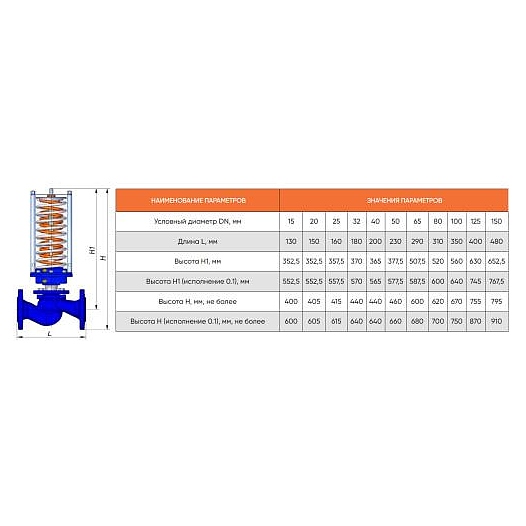 Регулятор давления Теплосила после себя чугун RDT-P Ду 40 Ру16 фл Рп1.4-15.8 Kvs=20м3/ч