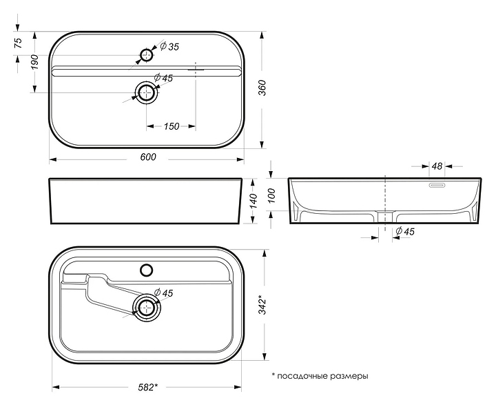 Раковина SANITA LUXE Infinity Shelf 60 популярной российской компании легко вписывается в интерьер любой ванной комнаты. Накладная конструкция изделия позволяет произвести быстрый монтаж, экономит место, и обеспечивает изящный внешний вид. Изделие выполнено из санфарфора, который обладает повышенной прочностью, устойчив к негативным внешним факторам, таким как грязь и запахи, а так же способен долгое время сохранять идеальную белизну. Кольцо перелива входит в комплект поставки. Смеситель в комплект поставки не входит и приобретается отдельно. Особенности: