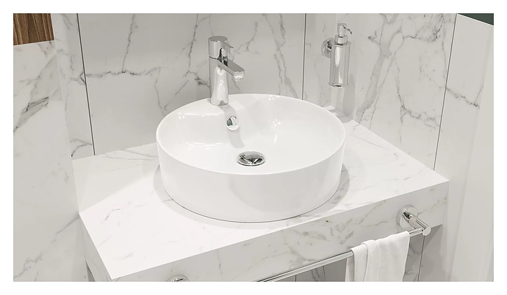 Раковина SANITA LUXE Best Shelf 43 популярной российской компании легко вписывается в интерьер любой ванной комнаты. Накладная конструкция изделия позволяет произвести быстрый монтаж, экономит место, и обеспечивает изящный внешний вид. Изделие выполнено из санфарфора, который обладает повышенной прочностью, устойчив к негативным внешним факторам, таким как грязь и запахи, а так же способен долгое время сохранять идеальную белизну. Смеситель в комплект поставки не входит и приобретается отдельно. Особенности: